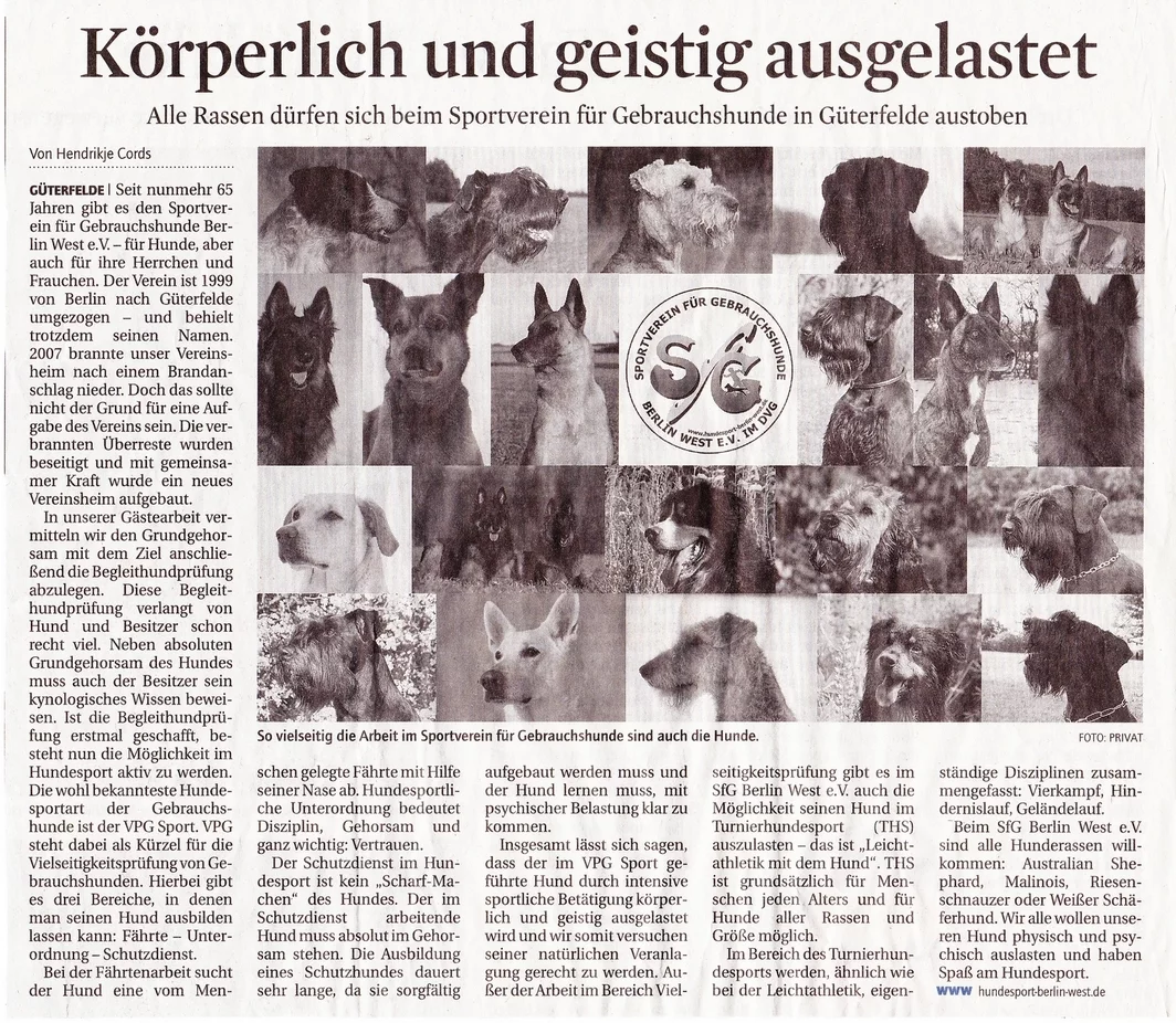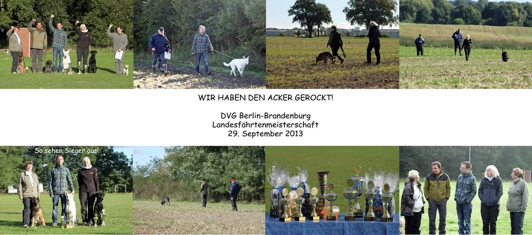 So, nun liegt auch die letzte ordentliche Prüfung für den SfG Berlin West e.V. hinter uns und wir beenden somit die Hundesportsaison auf unserem Platz in Stahnsdorf/Güterfelde. Für einige sehr erfolgreich und für andere etwas deprimierend, aber wir können ja nur aus den Fehlern lernen und freuen uns schon jetzt auf unsere VPG Frühjahrsprüfung im Jahr 2014.
