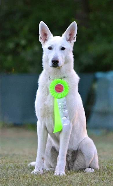 Pünktlich um 16:30 Uhr fand die Siegerehrung statt, bei der unsere beiden Hundedamen mit einer roten Schleife fürs Siegerfoto geehrt wurden. Lore und Emma erreichten insgesamt 261 Punkte in der Beginner Klasse und wurden somit Tagessieger in dieser Klasse. Panya erreichte bei ihrem ersten Start in Klasse 1 ein V, so dass es für uns im nächsten Jahr hoffentlich gleich mit der Klasse 2 weitergeht.