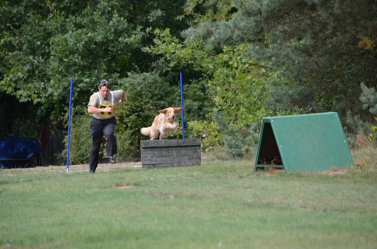 Im Anschluss ging es an die Läufe. Slalom, Hürdenlauf bei allen Hunden fehlerfrei – keiner prellte vor – alle Stangen blieben liegen. Im Hindernislauf verbockte Brioche beide Läufe mit dem Tonnen auslassen. Schade - 8 Fehlerpunkte. Aber am Ende reichte es für Melli und Brioche für den Aufstieg in VK 2.