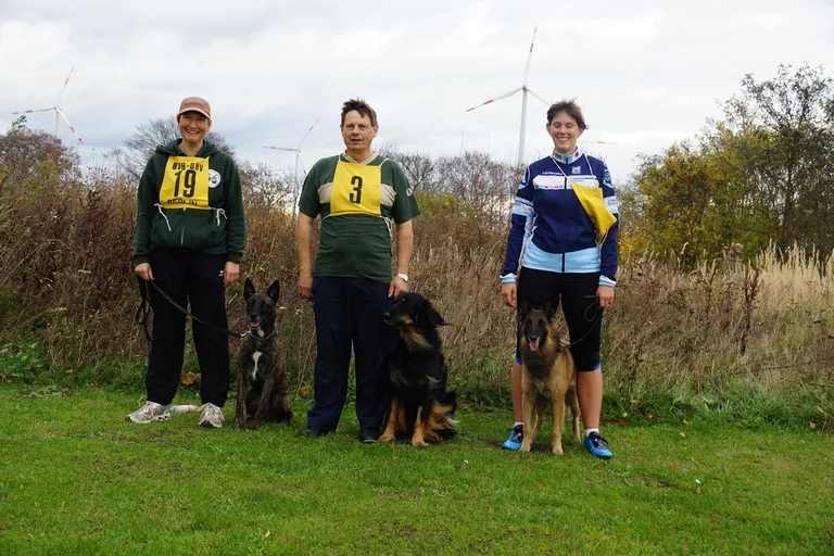 Anke mit Curly, Bianca mit Java und Basti mit Panya hatten sich für die Herbstprüfung bei der HSG Weinberg gemeldet. Alle drei Teams wollten/sollten in der Fährte antreten. Curly zeigte ihr Können in der FPr III und Bianca und Basti traten zum ersten Mal als „Konkurrenten“ in der FH 2 an. Bianca und Java haben da ja schon einige Erfahrungen, für Basti und Panya war es der erste Start in der höchstmöglichen Prüfungsstufe der Fährtenarbeit!